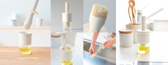 ほどよくオイルを含む濃密シリコンブラシで均一にオイルがひきやすく、フチにはすり切りパーツが付いているので量もコントロール可能!洗いやすいフタと一体化したブラシには、オイルの酸化を防止するパッキン付で見た目もスッキリ。ブラシはシリコン製で取り外して洗えるので長く使えます。