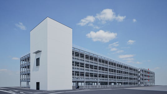 当社は、業界トップシェアを誇る自走式駐車場メーカーとして、国内で多数の施工実績を有しています。本計画では、当社が国土交通大臣より認定を受けている6層7段(6階建て)の大型立体駐車場1棟を含む計2棟が採用されており、当社製品として九州エリア初の導入となります。延床面積は37,375平方メートル 、駐車台数は約1,500台にのぼります。