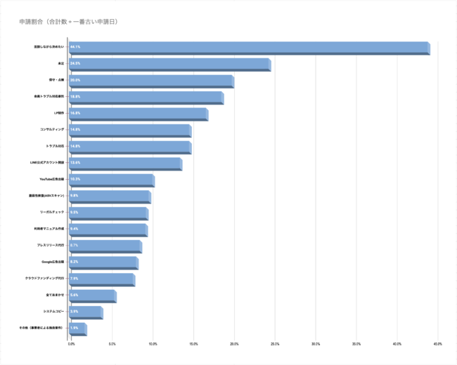 順位 / 項目名 / 申請割合(10%の場合は10事業者に1事業者が見積もり依頼)