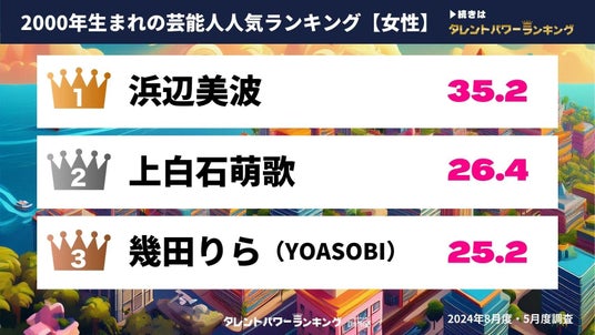 今回は、2000年生まれの芸能人に焦点を当て、タレントパワーランキングで検証しました。
