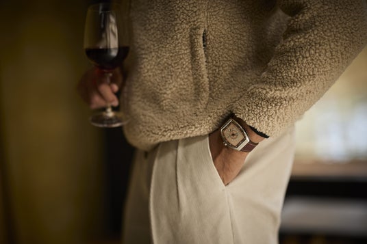 さらに、平山氏はフランク ミュラーの名作腕時計「ヴァンガード カサブランカ」を着用。1994年に誕生したこのモデルは、映画『カサブランカ』や1940年代のモロッコ・カサブランカの魅力からインスピレーションを得たデザインです。