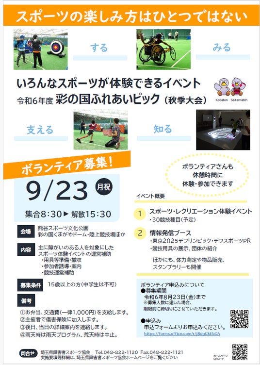 令和6年9月23日(月曜日・振替休日)に開催する「彩の国ふれあいピック(秋