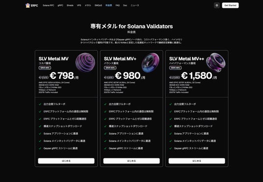 ELSOUL LABO B.V.(本社:オランダ・アムステルダム、代表取締役 CEO:川崎文武)および Validators DAO が運営する ERPC は、フランクフルトリージョンの Solana バリデータおよび Geyser gRPC ノードに最適な SLV Metal MV サーバーが完売したことをお知らせいたします。
