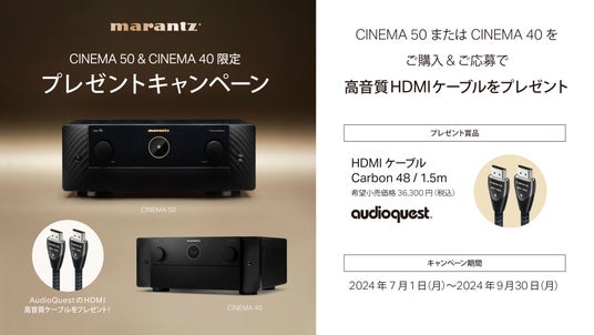 マランツは、2024年7月1日(月)より「ホームシアターをグレードアップ 高音質HDMIケーブルプレゼントキャンペーン」を実施いたします。