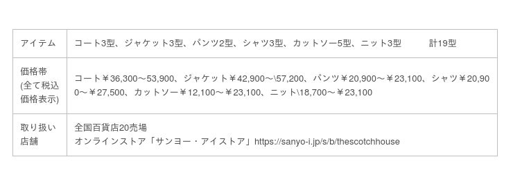 三陽商会が展開する紳士服ブランド「ザ・スコッチハウス」は、大人の男性に向けた 「URBAN COLLECTION」(アーバン コレクション)を2月10日(水)より全国百貨店20店舗とオンラインストアにて発売します。ジャケットやコート、シャツなど春夏物をモノトーンにまとめた新コレクションとして、上質で洗練された都会的なスタイルを提案いたします。