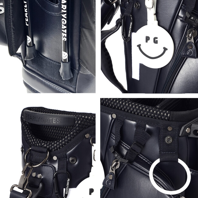 使いやすさと持った時の存在感を考え作られたスタンド式キャディバッグ。耐久性のある上質な合皮素材を採用し、使い勝手の良さを追求した機能性と精巧なロゴグラフィックが特徴。