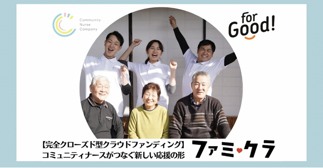 株式会社ボーダレス・ジャパン(代表取締役:田口一成/本社:東京都新宿区)が運営するクラウドファンディングサービス「For Good」は、人とつながり、まちを元気にする「コミュニティナース」の普及・育成、地域社会への実装を手がけるCommunity Nurse Company 株式会社(本社:島根県雲南市、代表取締役:矢田明子、以下CNC)と連携し、身近な人の well being をコミュニティナースと共に応援する仕組みとして、「ファミリークラウドファンディング(以下ファミクラ)」を2023年3月より開始しました。