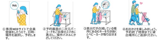 「もっと気軽に子供と外出できる社会を!」をコンセプトに、子育て世帯が子供と気軽に外出できる社会の実現を目的とした、外出先でも便利に利用できる予約可能なベビーカーのレンタルサービスです。観光や旅行の際はもちろん、お買い物やランチなど短時間でも気軽にご利用いただけます。