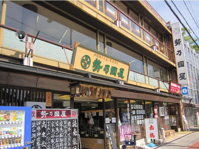 伊勢神宮宇治橋より徒歩1分、宇治橋正面にございます。1階売店では伊勢名物「神代餅」をはじめ伊勢志摩のお土産物、天照皇大神の掛軸、真珠製品などたくさんの商品を取り揃えています。