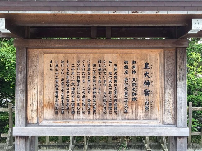 およそ2000年前、垂仁天皇の御代から五十鈴川のほとりに鎮まります皇大神宮は皇室の御祖先であり、我々国民から総氏神のように崇められる天照大御神をお祀りしています。