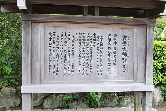 およそ1500年前、雄略天皇が天照大御神のお告げにより、豊受大御神を山田原の地に迎えたことに端を発する。宮域には、豊受大御神を祀る正宮や、大々神楽などが行われる外宮神楽殿などが立ち並ぶ。