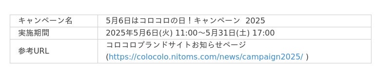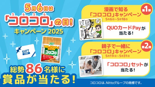株式会社ニトムズ(本社:東京都品川区、代表取締役社長:右近敦嗣)は、5月6日の「コロコロの日」を記念して、「5月6日はコロコロの日!キャンペーン 2025」をX(旧:Twitter)にて実施します。本キャンペーンでは2つの施策を2025年5月6日(火)より順次実施します。
