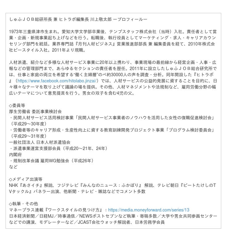 ※しゅふJOB総研公式ツイッター⇒https://twitter.com/shufujobsoken