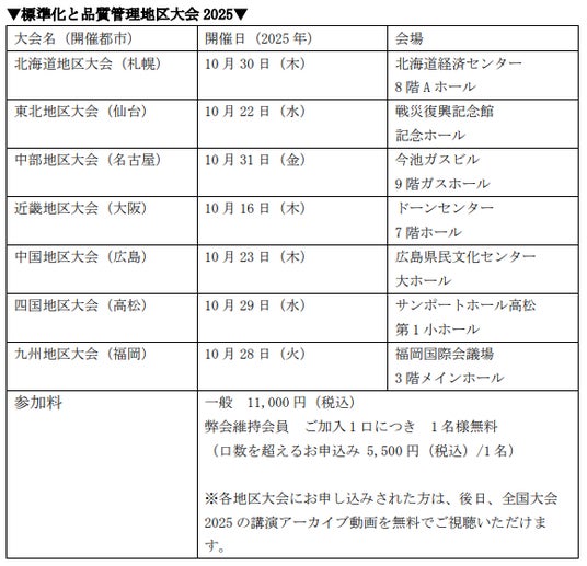 一般財団法人日本規格協会(本部:東京都港区、理事長:朝日弘)は、標準化と品質管理の関係者が一堂に会する、年に1度の祭典『標準化と品質管理全国大会』を2025年10月14日(火)に開催いたします。場所は東京・永田町の都市センターホテル。今年のテーマは「持続可能な未来社会をデザインする― 実現のカギはルールメイキングとデジタル革新」です。