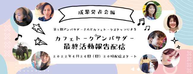 世界中の講師と生徒をつなぐオンライン習い事サイト「カフェトーク(http://cafetalk.com/)」を運営する株式会社スモールブリッジ(本社:東京都渋谷区、代表取締役:橋爪小太郎)は、2022年6月26日「カフェトークアンバサダー活動報告配信 - 成果発表会編」を無料配信いたします。