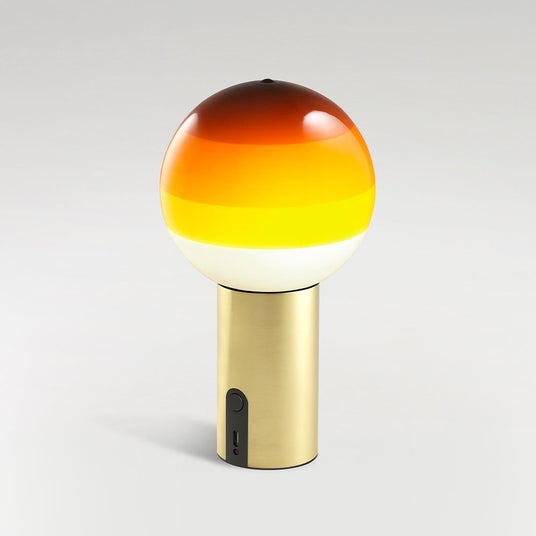 濃淡の異なる色の層で同心円を描いたガラスのライト。点灯すると、幻想的な灯りを生み出します。消灯時には、美しい色ガラスの球体がオブジェとなり、空間をさりげなく彩ります。乳白ガラスのセードに塗料をディップ(浸す)してグラデーション模様を生み出す、ユニークな製法で作られており、着色は職人の手作業で丁寧に仕上げられています。USB充電式でコードレス。お好きな場所へ気軽に持ち運んでお使いいただけます。