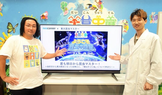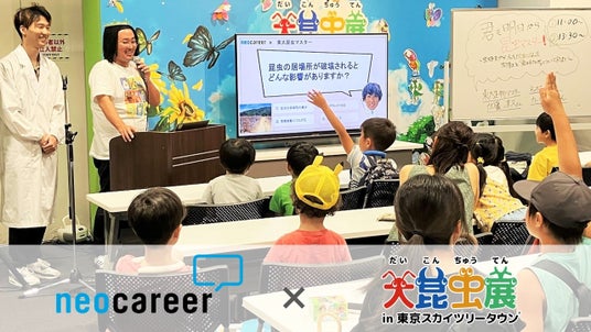 人材総合サービス会社の株式会社ネオキャリア(本社:東京都新宿区、代表取締役CEO:西澤 亮一、以下「ネオキャリア」)は、2024年7月29日に東京スカイツリータウンで開催された「大昆虫展」のイベントプログラムに出展しました。当日は、昆虫や小動物の研究を行う東京大学大学院生の加藤 凛久(かとう・りく)さんと協働し、昆虫に関するクイズや「実はすごい虫」の紹介、さらに加藤さんの昆虫への興味関心の探求から学んだことなどの講演を行いました。