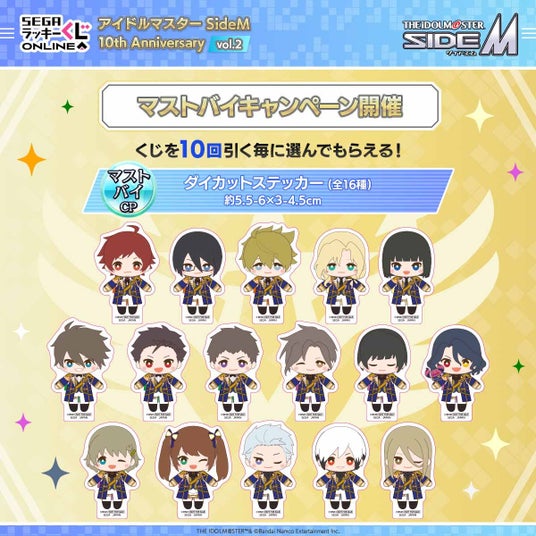 株式会社セガ フェイブは、セガ ラッキーくじオンライン「アイドルマスター SideM 10th Anniversary vol.2」を2025年4月9日11時より販売開始いたします。