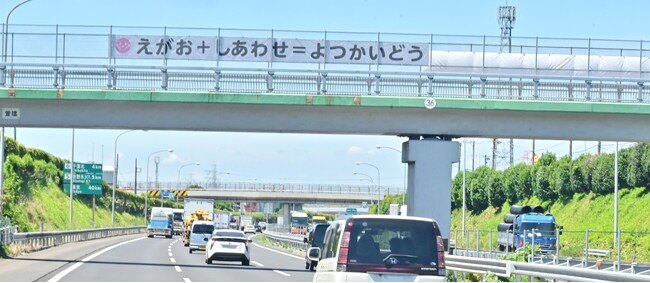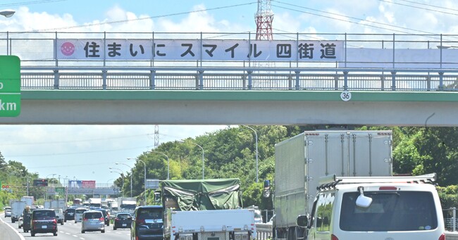 四街道市では、東関東自動車道を利用する方に本市をPRするため、高速道路を跨ぐ陸橋にPR横断幕を掲出しています。