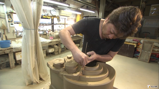 30枚もの板状の粘土を使って作られる鬼瓦の製造工程を取材します。