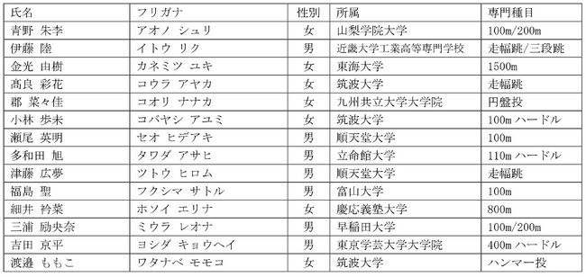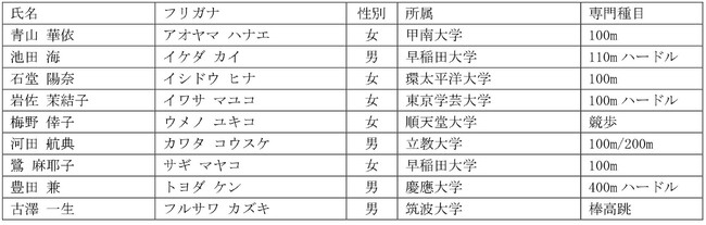このプログラムを通じ、トップアスリートとしての競技力向上はもちろんのこと、競技以外のステージでも活躍する人材を輩出し、陸上から生まれるリーダーの方々が、これからのスポーツ界や社会をより輝くものにしていただくことを目指しており、この目的に対し賛同し、強い参加意欲のある競技者を募集いたします。