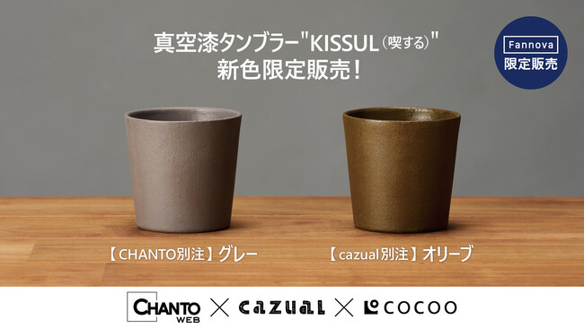 日本が誇るモノづくりの技術を融合させ、心地よさを探究する「COCOO(こくう)」より、京都の老舗漆屋と共同開発した新技術を搭載した、丈夫で天然の抗菌性に優れ、普段使いしやすい “真空漆”タンブラー「KISSUL(キッスル)」の新色を限定販売! 人気ウェブメディア(CHANTO・cazual)のコラボ商品。