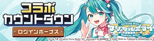 バーチャルシンガー『初音ミク「マジカルミライ 2024」』とのコラボイベント。コラボ期間中は「初音ミク」「鏡音リン」「鏡音レン」「巡音ルカ」「MEIKO」「KAITO」など人気キャラやアイテムが登場!