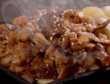 注文が入るたびに特製の秘伝ダレで焼き上げた肉は香ばしく、ごはんが進むやみつきな味わい。一番人気の焼肉定食は熱々の鉄板皿に肉を乗せて提供するので、受け取る際にはタレの香ばしい香りとジュージュー鳴る音が食欲をそそります。