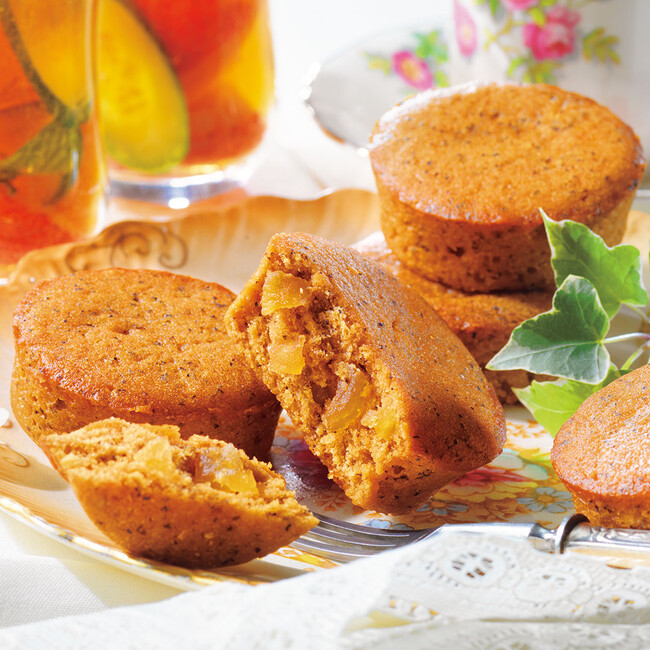 アップルジャムとアールグレイの茶葉を入れた生地に、洋酒でつくったシロップに漬け込んだりんごを入れて焼き上げました。しっとりとした食感も魅力です。