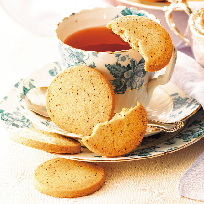 アールグレイの茶葉を生地に練り込んで、歯ざわりよく焼き上げました。そのまま味わうのはもちろん、紅茶やミルクなどに浸し、しっとりとさせて食べるのもおすすめ。イギリスの国民食とも言われるビスケットで本場のティータイム気分を味わって。