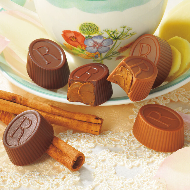 ひと口サイズのショコラで、[シナモン]・[ジンジャー]の2種類のミルクティーの風味を表現しました。ミルクティーのクリームには、味わい濃く芳醇な香りからミルクティーにぴったりの茶葉・アッサムを使っています。