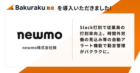 すべての経済活動のデジタル化を目指す株式会社LayerXは、勤怠管理サービス「バクラク勤怠」が、newmo株式会社(代表取締役CEO 青柳直樹、以下「newmo」)に導入されたことをお知らせします。