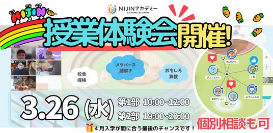 株式会社NIJIN(本社:東京都江東区、代表取締役:星野達郎)が運営する不登校オルタナティブスクール『NIJINアカデミー』は、3/26(水)にメタバースで体験できる授業体験会を実施することをお知らせいたします。