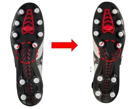 ・アウトソール部は、「MORELIA NEO III」の基本設計をベースに、合成パーツをY字構造に再設計することで、着用時の地面からの突き上げ感の低減を追求しました※2。(図の赤丸部)