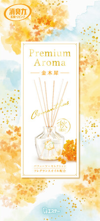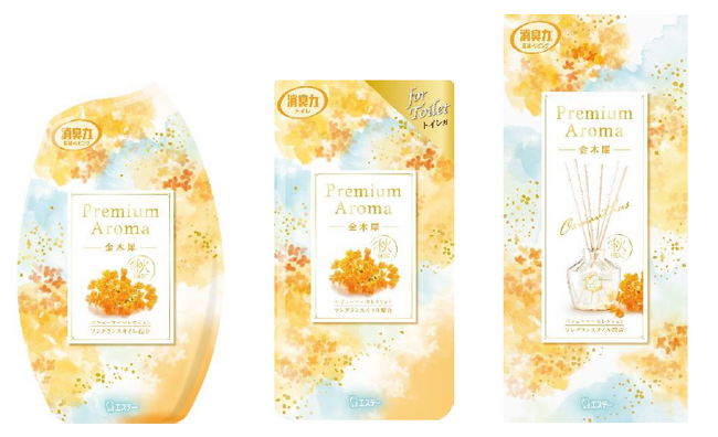 エステー株式会社は、消臭芳香剤「消臭力」のワンランク上の上質な香りをお届けする「消臭力 Premium Aroma(プレミアムアロマ)」シリーズから、ふわり秋めく〈金木犀〉の香りの「玄関・リビング用 消臭力 Premium Aroma」、「消臭力 トイレ用 Premium Aroma」、「玄関・リビング用 消臭力 Premium Aroma Stick(※)」を7月27日から全国のスーパー、ドラッグストア、ホームセンターなどで季節数量限定品として新発売します。