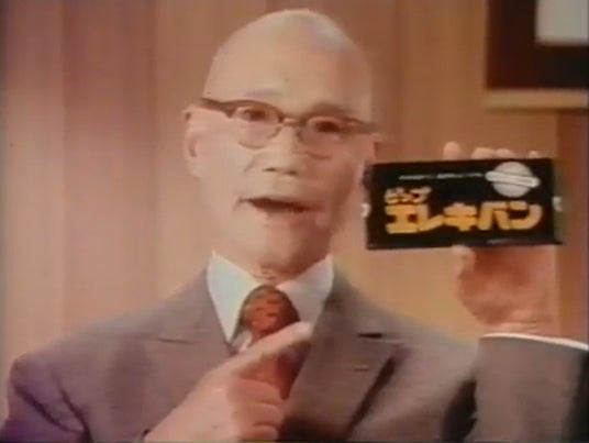 「それでは会長」と促された会長の横矢が机に座ったまま「ピップエレキバン!」と連呼するだけのシンプルな内容でした。当初は九州限定で細々と放映を開始しましたが、たちまちに評判を呼び「ピップエレキバン」の商品名が世に知れ渡りました。