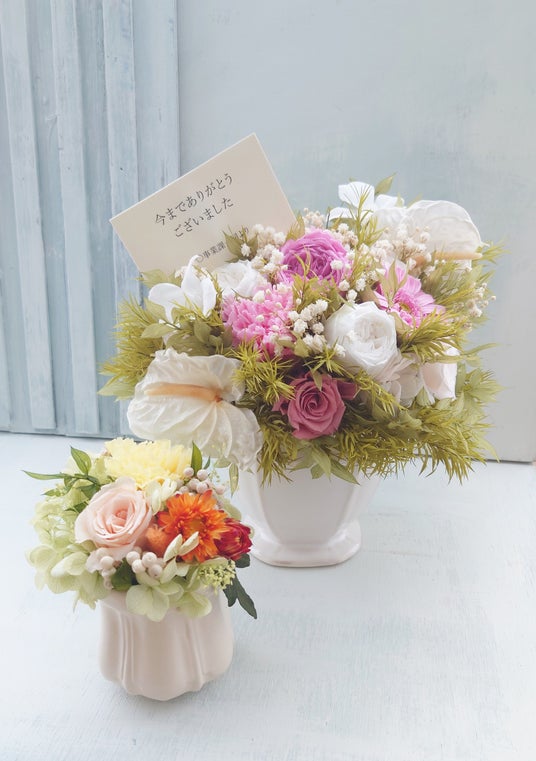 オフィスの受付装花や昇進祝い、退職記念などの贈り物にも最適です。