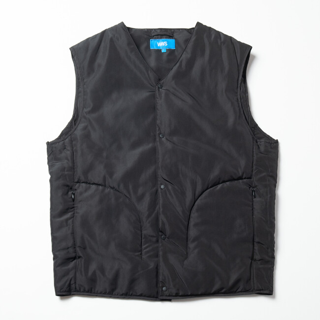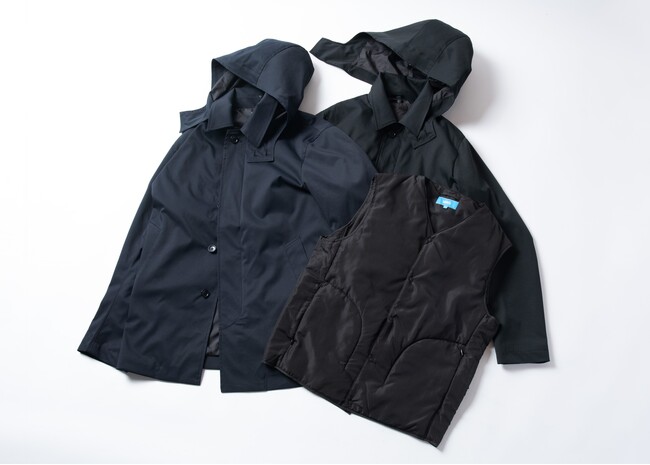 スナップボタンで取り外し可能なベストは、スーツジャケットの下にインナーダウンとして着用でき、気温やスタイルに応じて着方を変えられます。顎下までボタンで留めることができ、風よけに最適。フードは取り外し可能です。WWS公式オンラインストアやWWS公式ストア、一部取扱店で販売いたします。