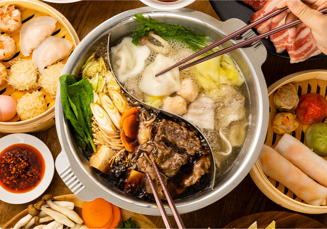 しゃぶしゃぶは種類豊富なこだわりの具材と風味豊かなスープの組み合わせで様々な味を楽しむことが出来ます。また、しゃぶしゃぶに並ぶ看板メニューである飲茶は1つ1つ注文をお受けしてから調理を行うためテーブルであつあつをお召し上がりいただけます。