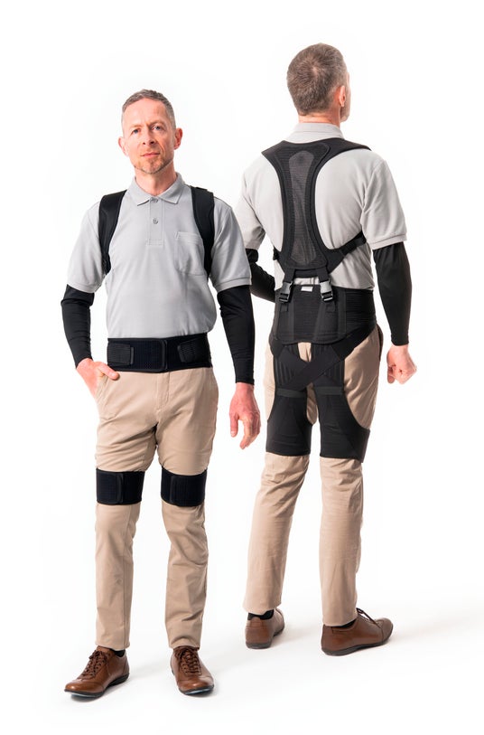 それらを体の動きに合わせて適切な位置に配置し、なおかつ動作によるずれを防ぐために、当社のサポーター開発で蓄積したノウハウをふんだんに盛り込みました。動作負担の軽減等を目的として、特に製造・物流・農業・介護業界の現場で導入されています。