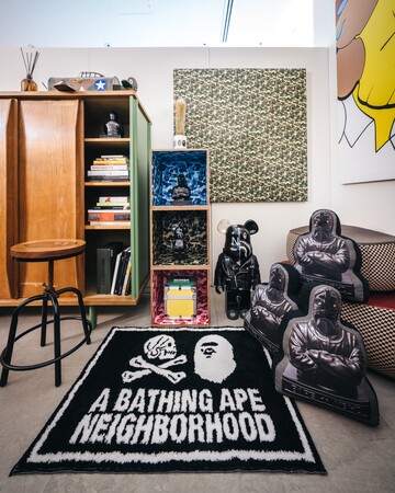 インセンスチャンバーのプリントを施したユニークなクッションや、スカル&エイプヘッドのコラボレーションロゴがデザイン されたラグも登場し、ファッションからライフスタイルまで幅広いアプローチでファン垂涎のコレクションになっています。