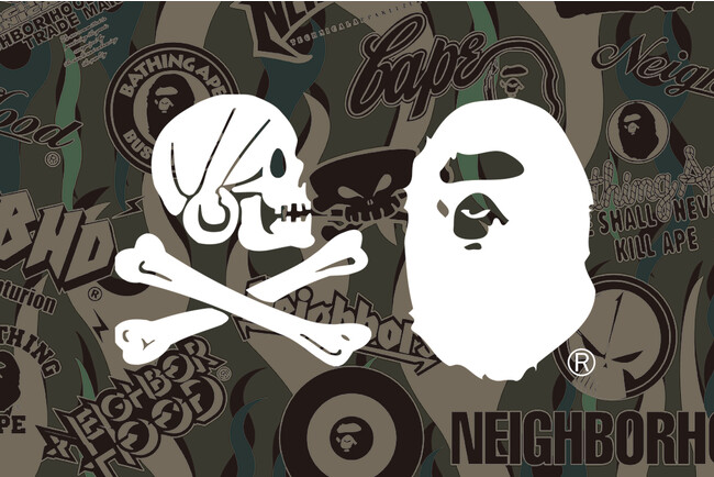 モーターサイクル、ミリタリー、アウトドア、トラッド要素をバックグラウンドに、ブランド独自の解釈で 提案する東京、原宿発のファッションブランド「NEIGHBORHOOD(R)」と「A BATHING APE(R)」が 4 年ぶりに コラボレーションを発表。 今回のコレクションは、バーシティジャケットをはじめとするアパレルコレクションが 12 型、 ライフスタイルグッズが 7 型と豪華なラインアップ。