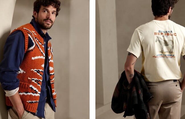 バナナ・リパブリックは、アニマルプリントやジオメタリック柄などブランドのルーツであるサファリをモチーフにした「アーカイブコレクション」より、サステナブル素材や上質なスエード素材を採用し、よりモダンにアップデートした新作アイテムを展開します。80年代から90年代のブランドのDNAであるワーク・ミリタリー・サファリといった、ヴィンテージ感のあるアーカイブをトレンドライクなデザインに落とし込んだ新作コレクションは、全国のバナナ・リパブリックストアと公式オンラインストア( https://bananarepublic.gap.co.jp/ )で販売を開始しています。