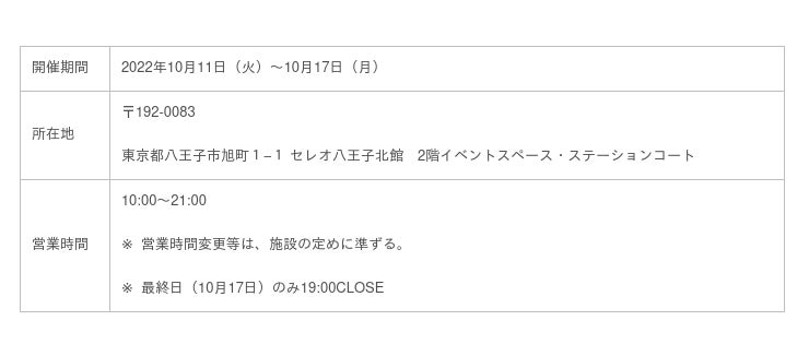 様々なスペースやイベントの企画・運営を手がける株式会社エスエルディー(本店:東京都港区、代表取締役社長:有村 譲、証券コード:3223、以下「当社」)は、”kawara CAFE”ブランドの公式ネットショップ「kawara CAFE at Home」のポップアップショップをセレオ八王子にて10月11日(火)~10月17日(月)の期間限定でブース出店いたします。