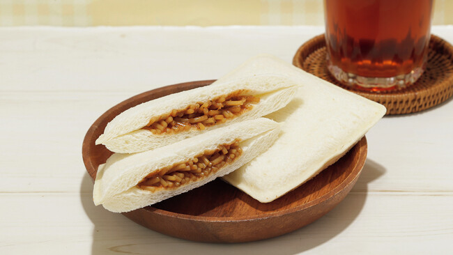 ふっくらしたパンに和風醤油ツナマヨを包み込み、焼き海苔をトッピングしました。「パンコーナーに、おにぎり!?」という驚きと、見た目が楽しいおにぎりパンです。和風醤油ツナマヨ味の濃厚な味が、シンプルな味わいのパンにベストマッチします。