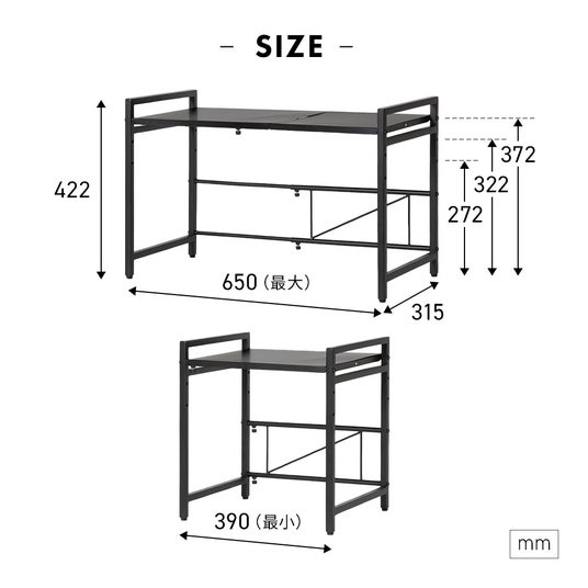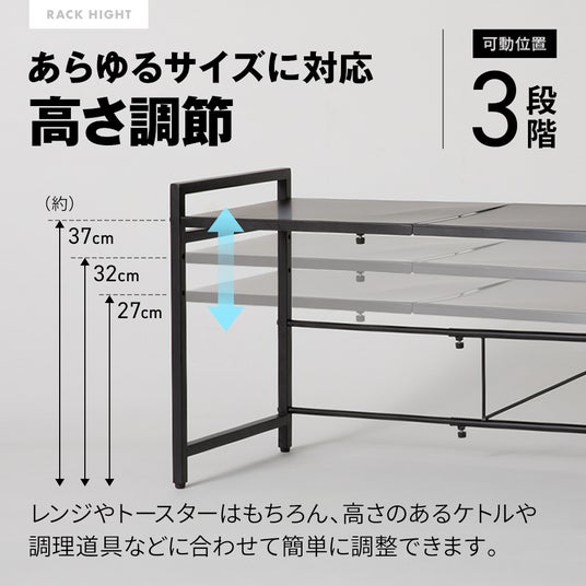 伸縮でかんたんサイズ調整、頑丈かつスタイリッシュなレンジ上ラックを発売。
