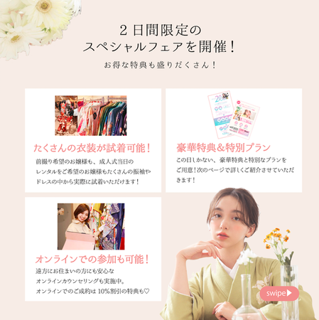 実際の成人式を迎えたお嬢様のあったらいいなの声を取り入れたプランとなっております。