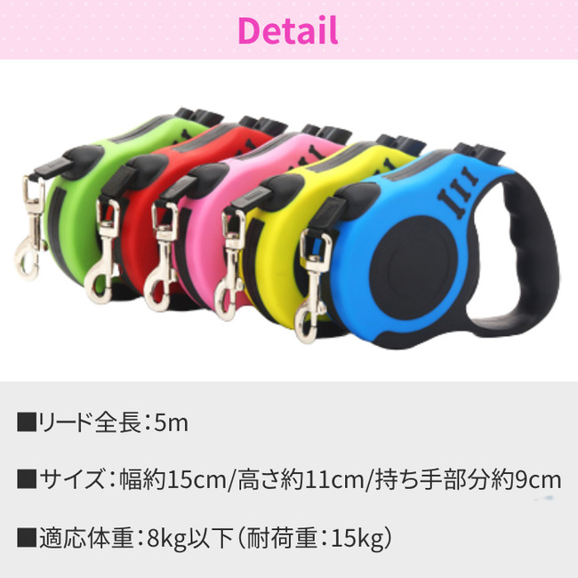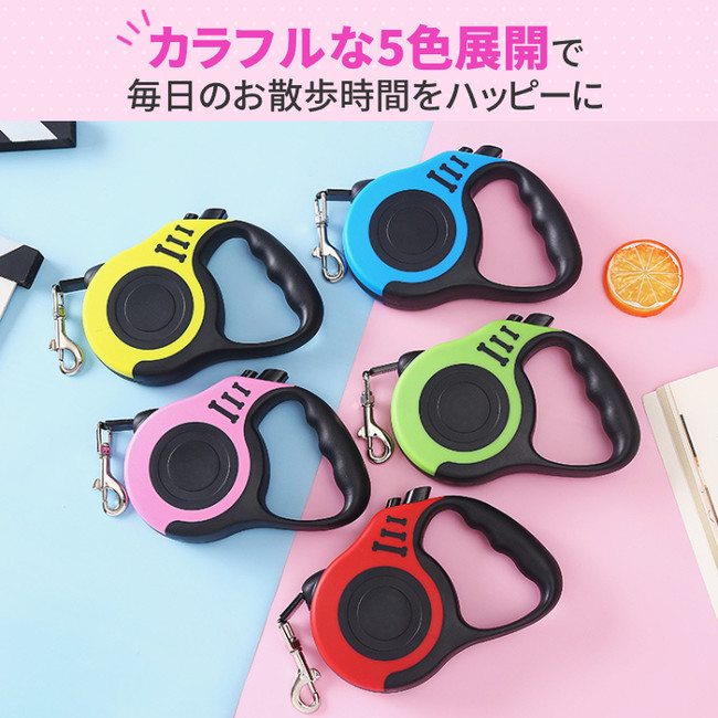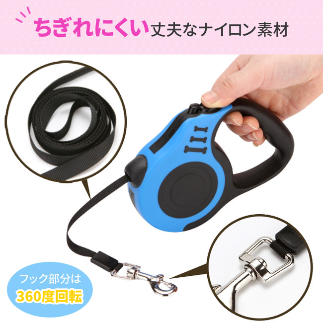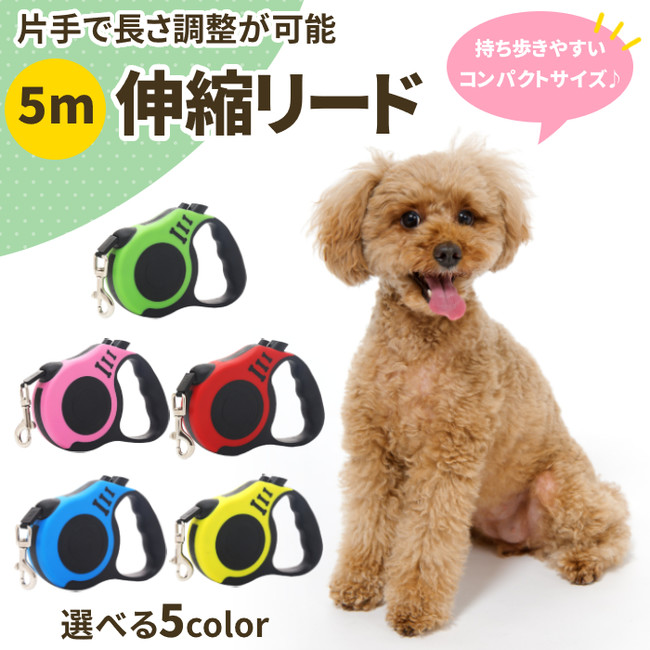 リード 犬用 ペットリード 伸縮 5m 5メートル 巻き取り式 ペット用品 中型犬 小型犬用 ハーネス ワンタッチ【gi-PR-001】