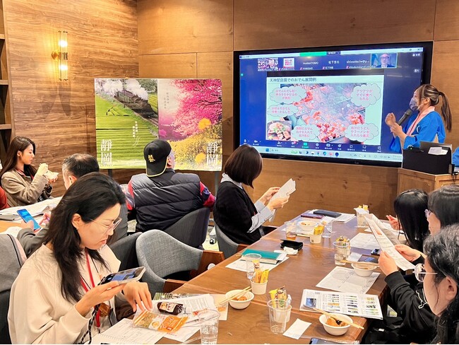 同イベントでは、静岡県の観光紹介に加え、静岡県の海外戦略5品目の1つである日本酒のほか、お茶リキュールやとうもろこし焼酎などの、静岡県産酒類のPRを行いました。静岡県内の生産者など5者がオンラインで参加し、台北市内の会場に集まったバイヤーやレストラン経営者など約20者に、商品の特徴などを説明しました。