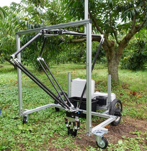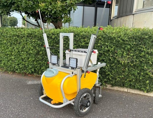 当日は、農薬散布車両「Mist Rover(ミストローバー)」の操作を体験していただけます。 なお、ミストローバーの休憩中は、自動栗拾いロボット「Arm-i(アーミィー)」 の試験運転を予定しています。